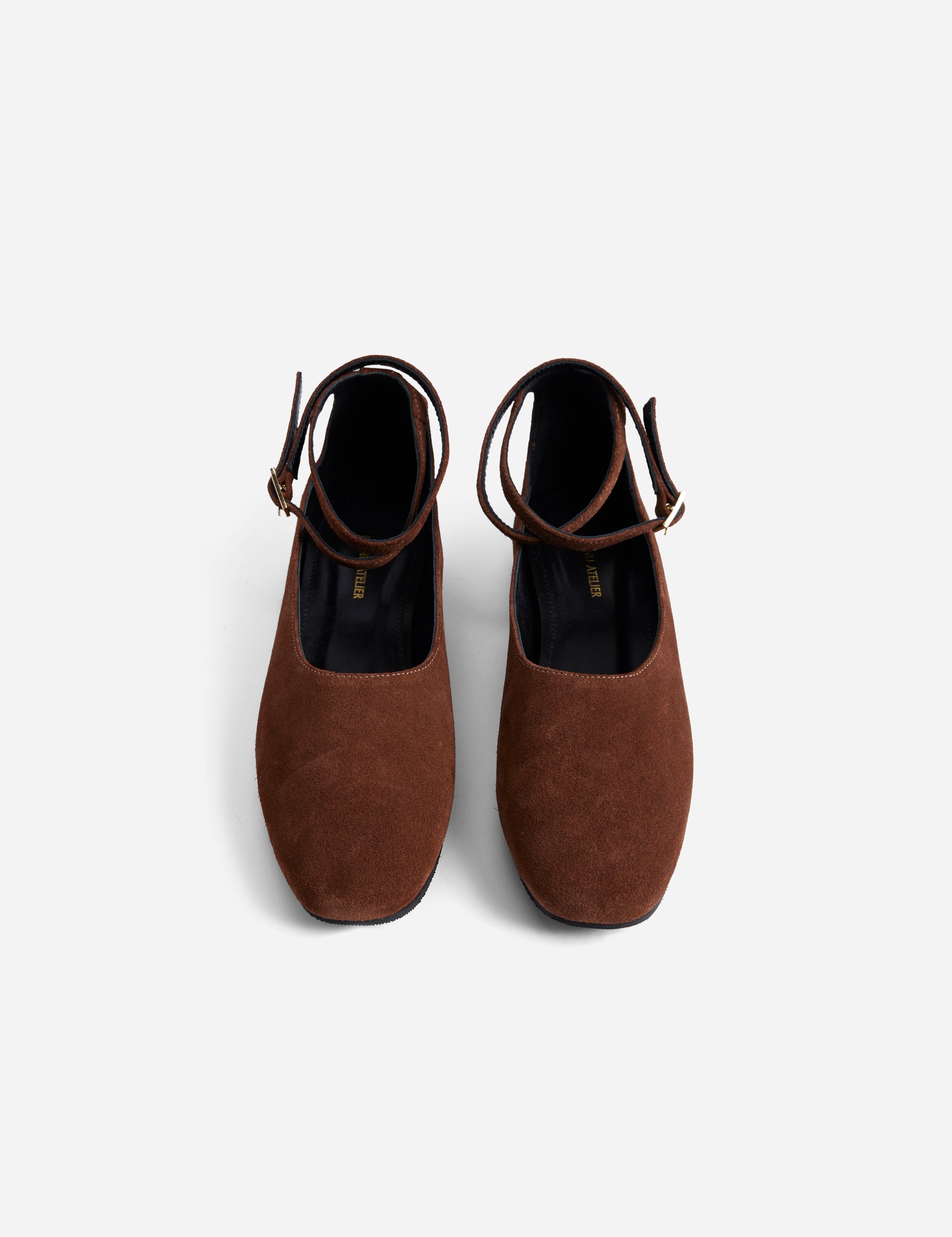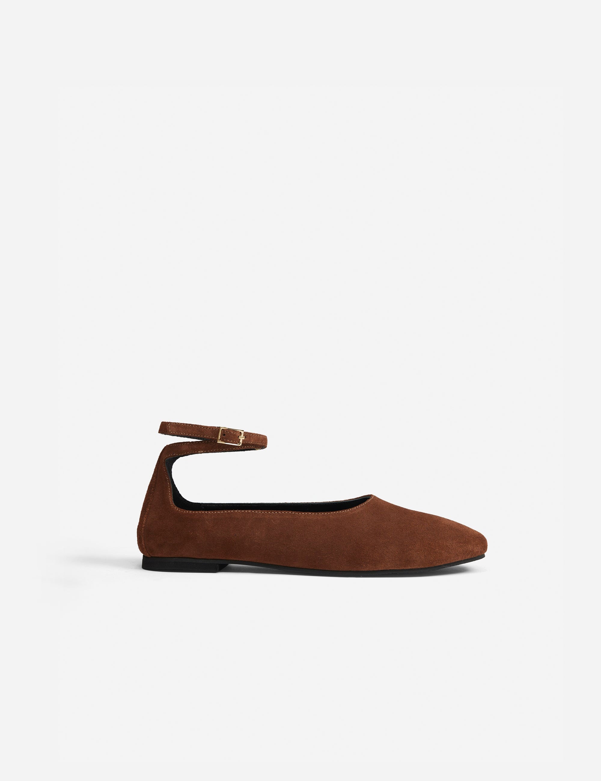Manu Ballet Flats With Cross Over Ankle Strap Chocolate Suede