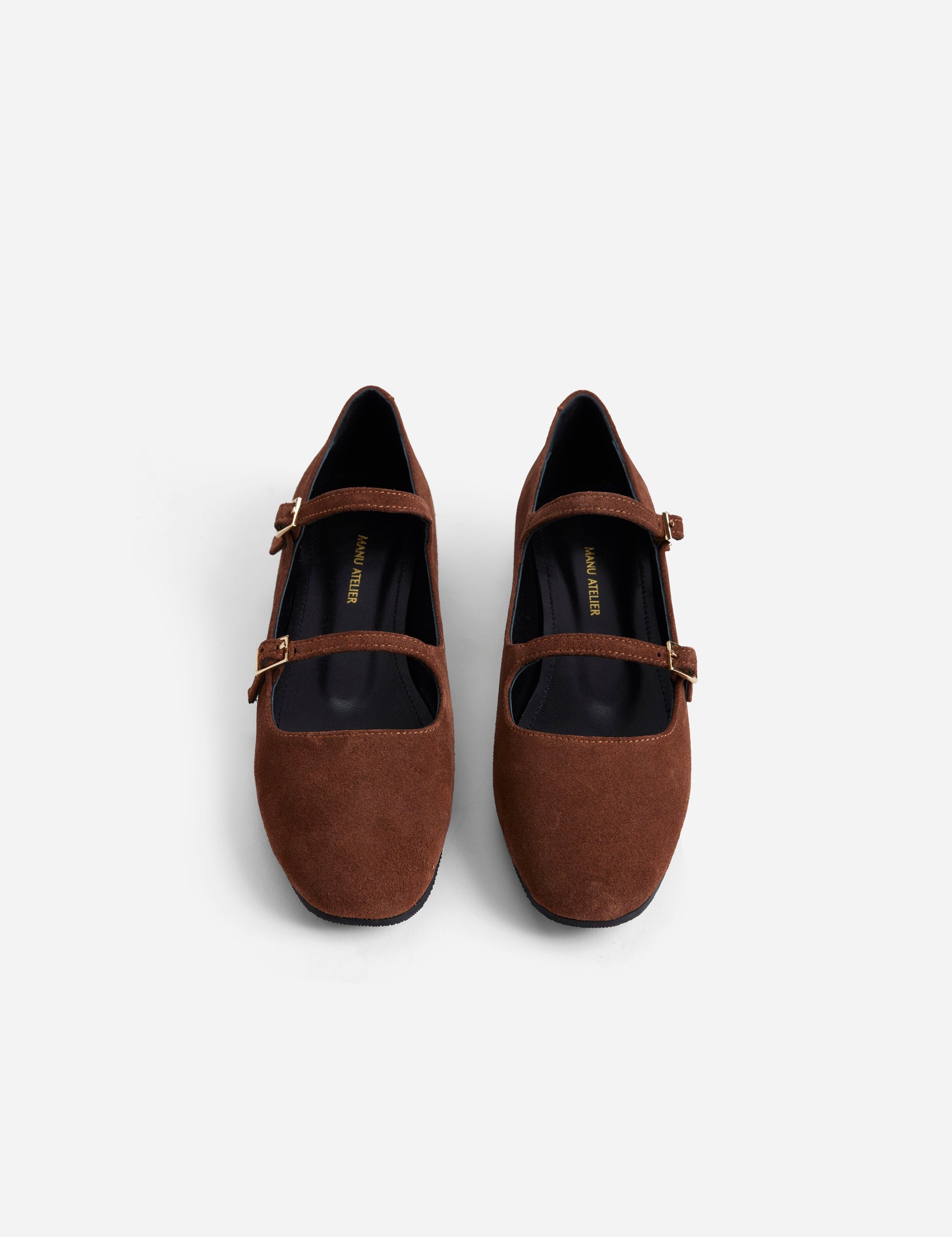 Manu Ballet Flats With Double Belt Chocolate Suede