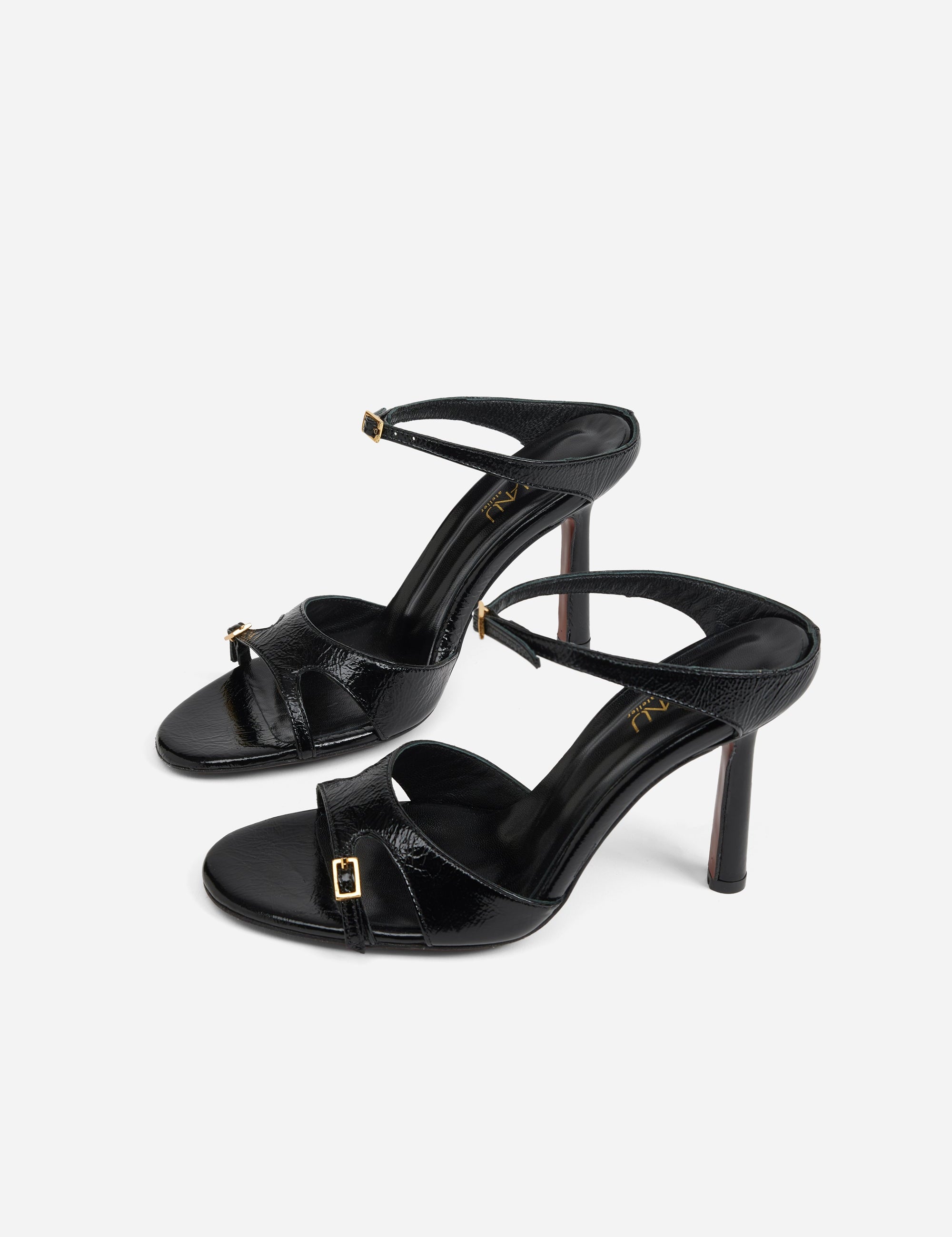 Almond Toe Sandals Black High Gloss
