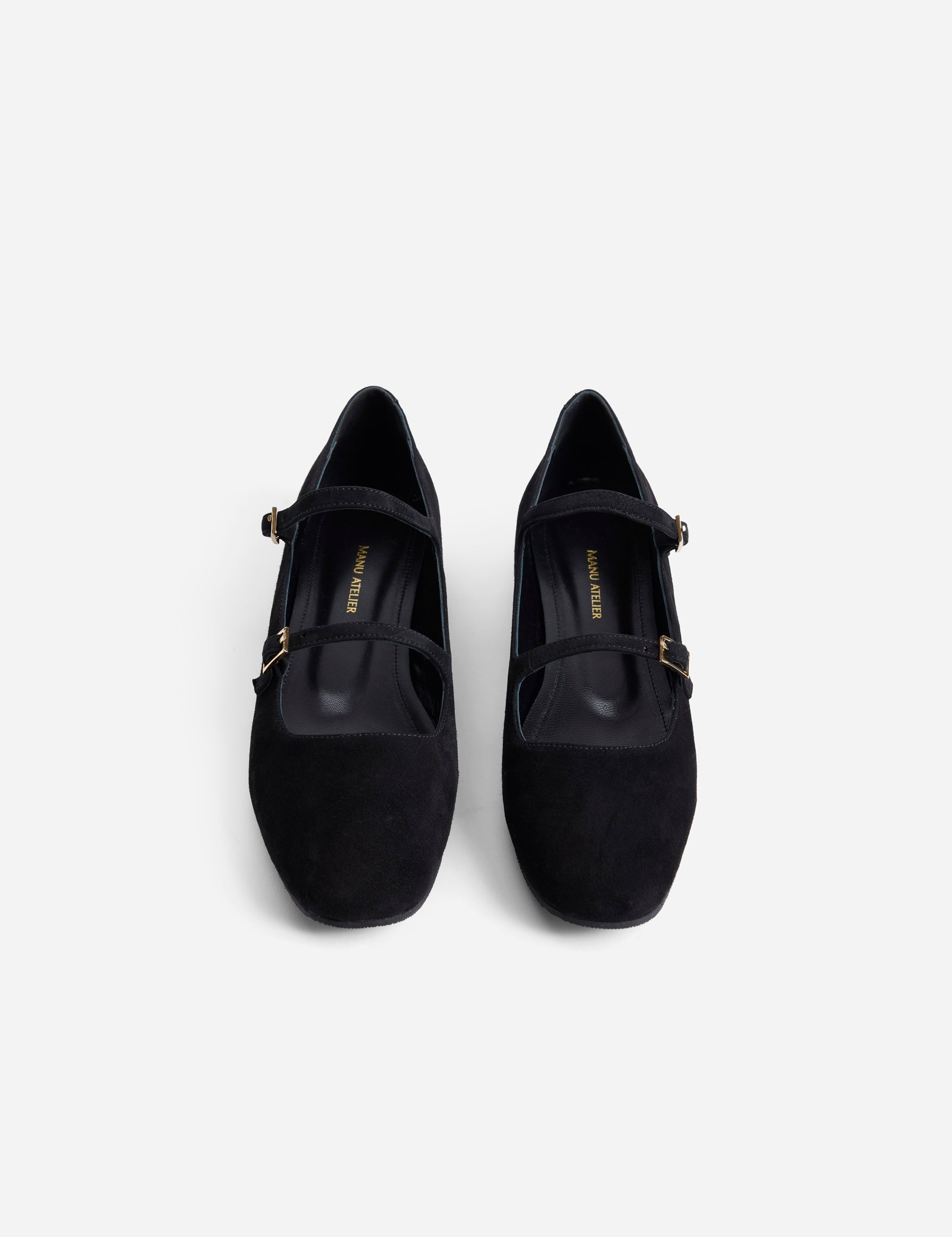 Manu Ballet Flats With Double Belt Black Suede