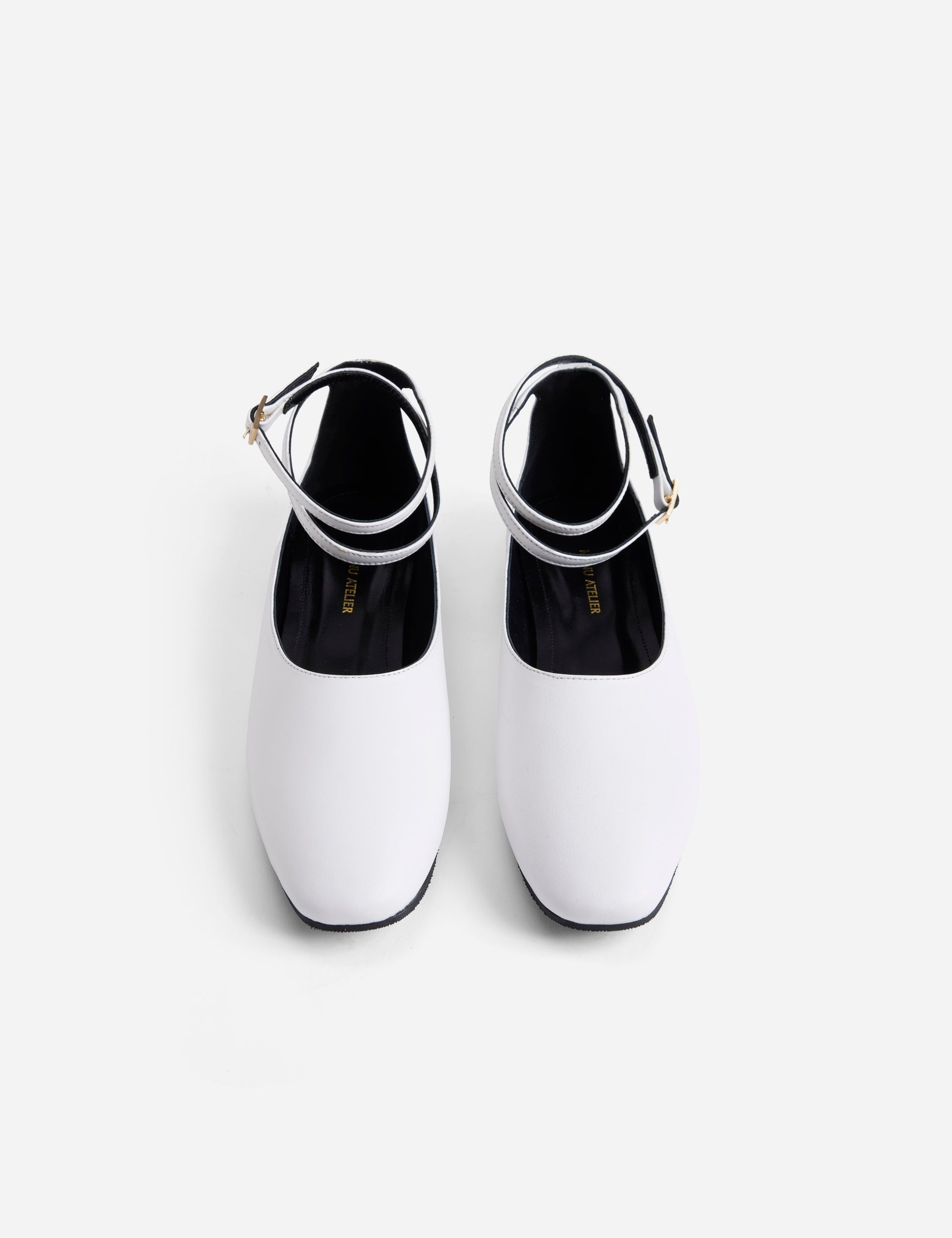 Manu Ballet Flats With Cross Over Ankle Strap White Soft