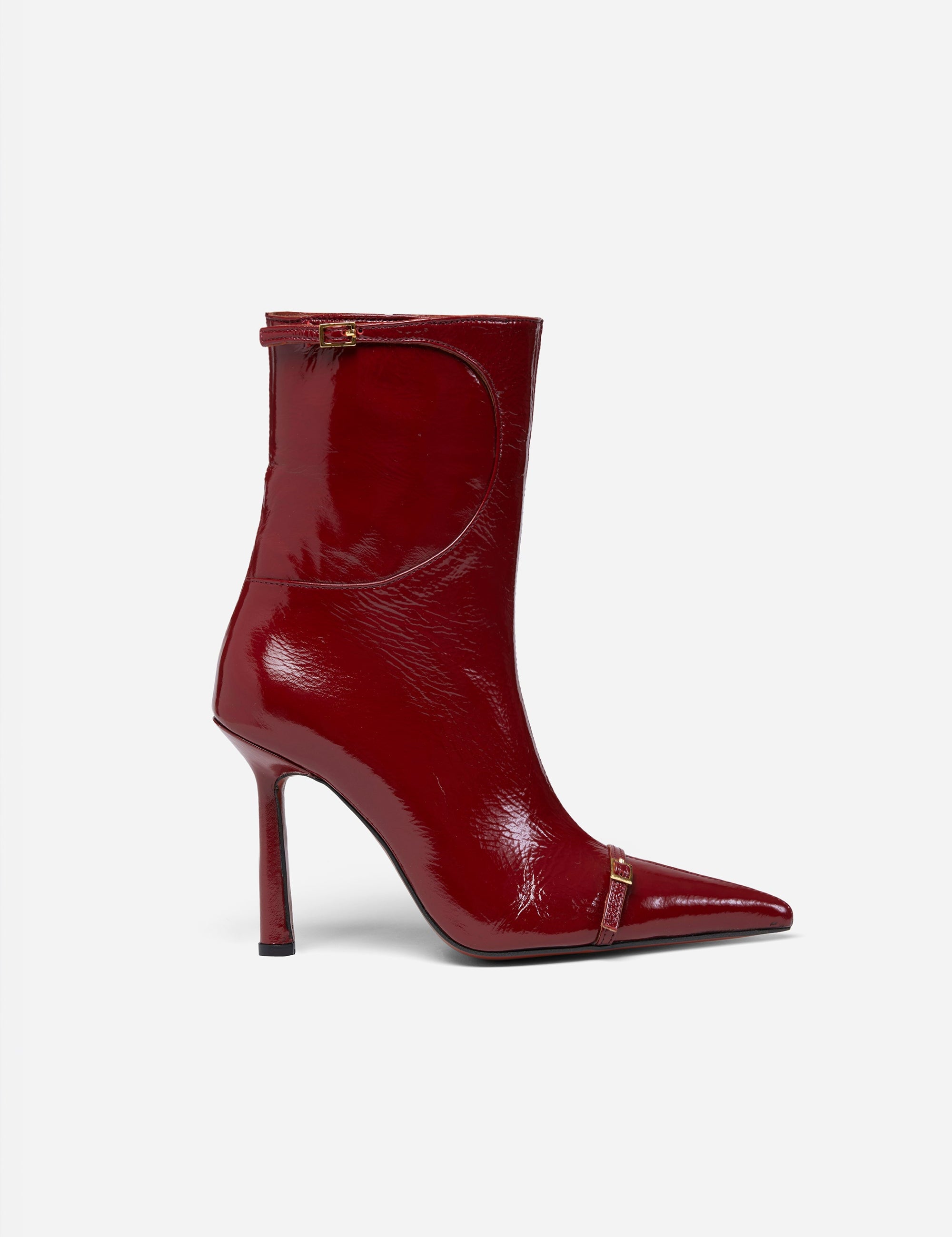 Pointy Toe Ankle Boots Rusty Red High Gloss