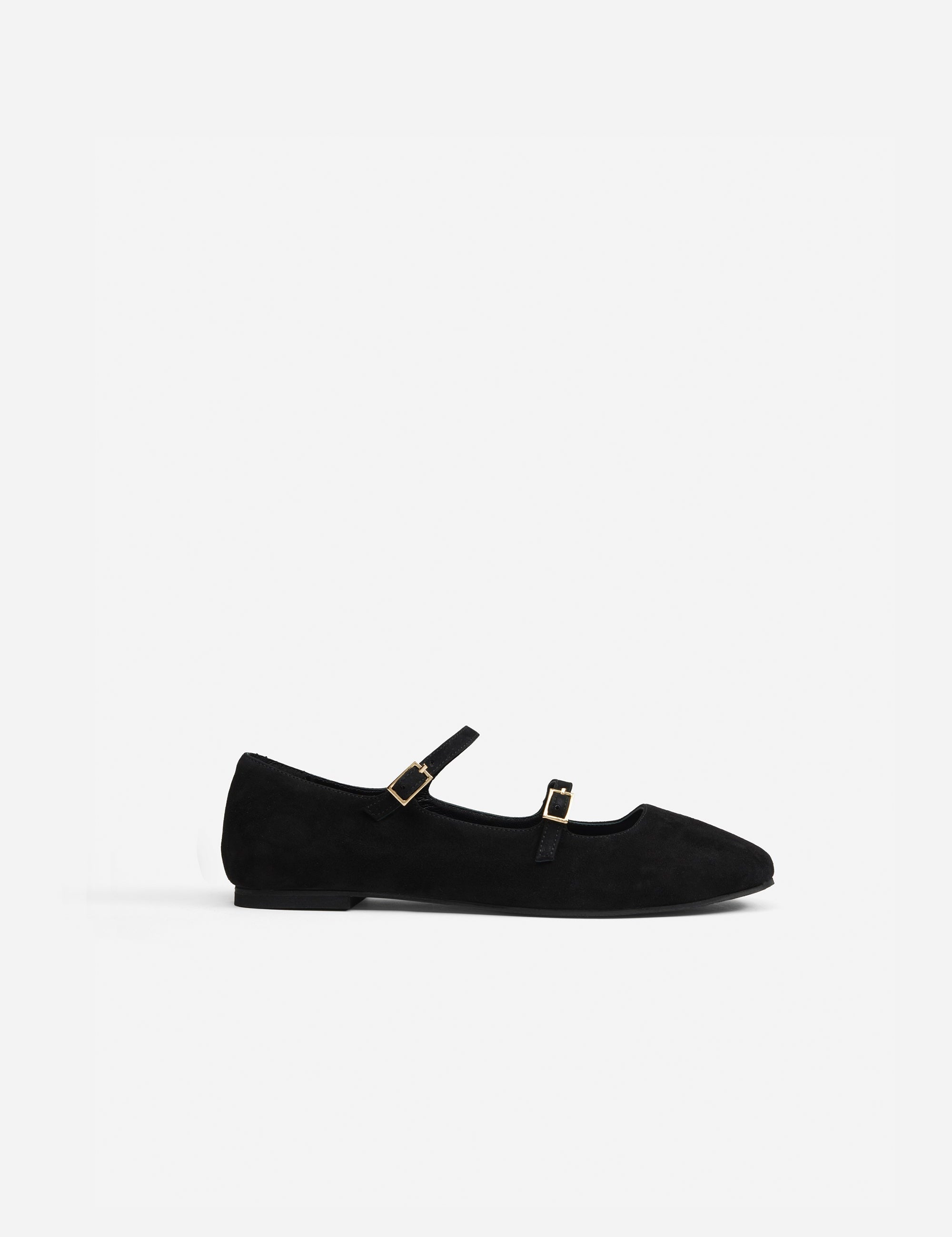 Manu Ballet Flats With Double Belt Black Suede