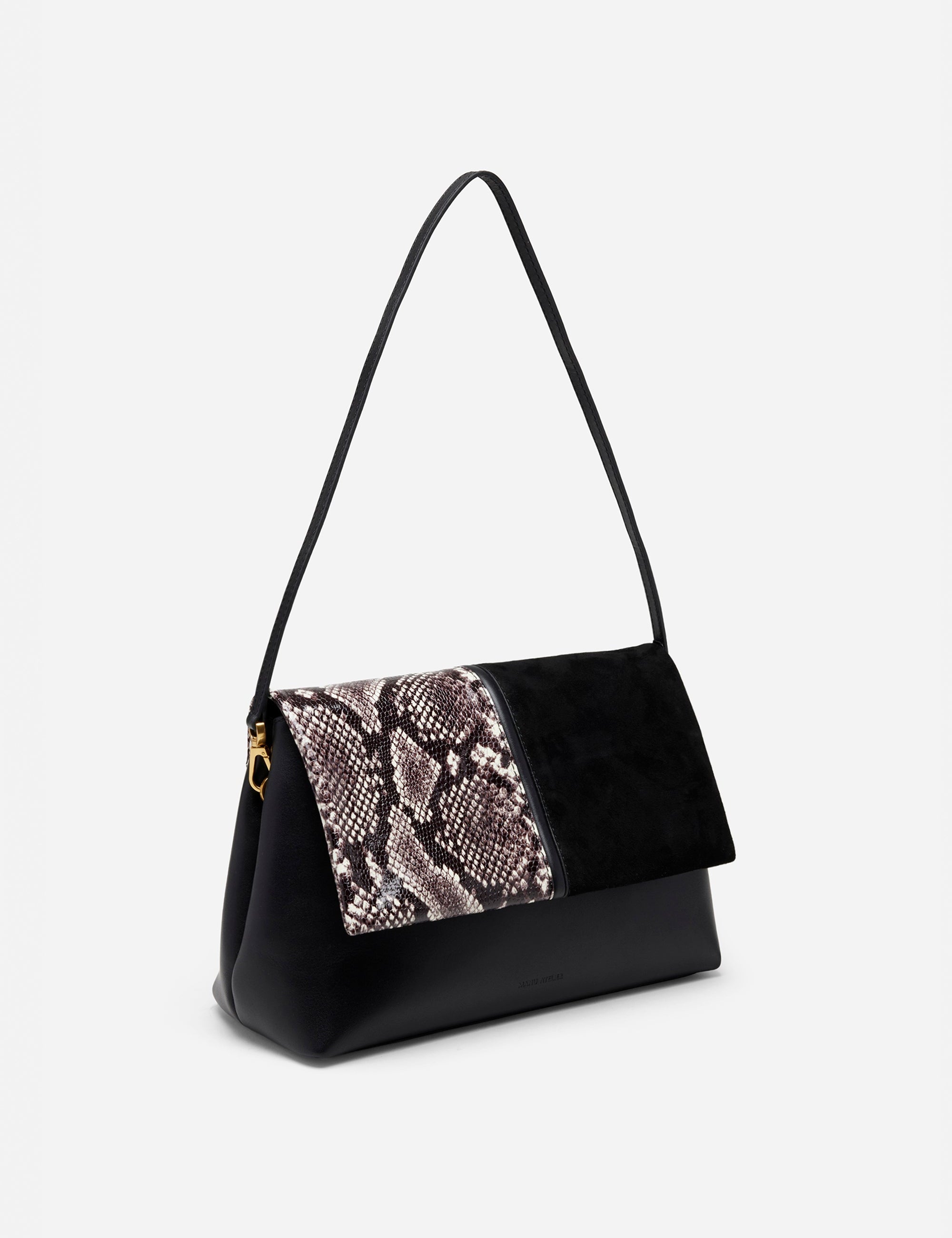 The Fold Bag Black Suede & Snake Embossed